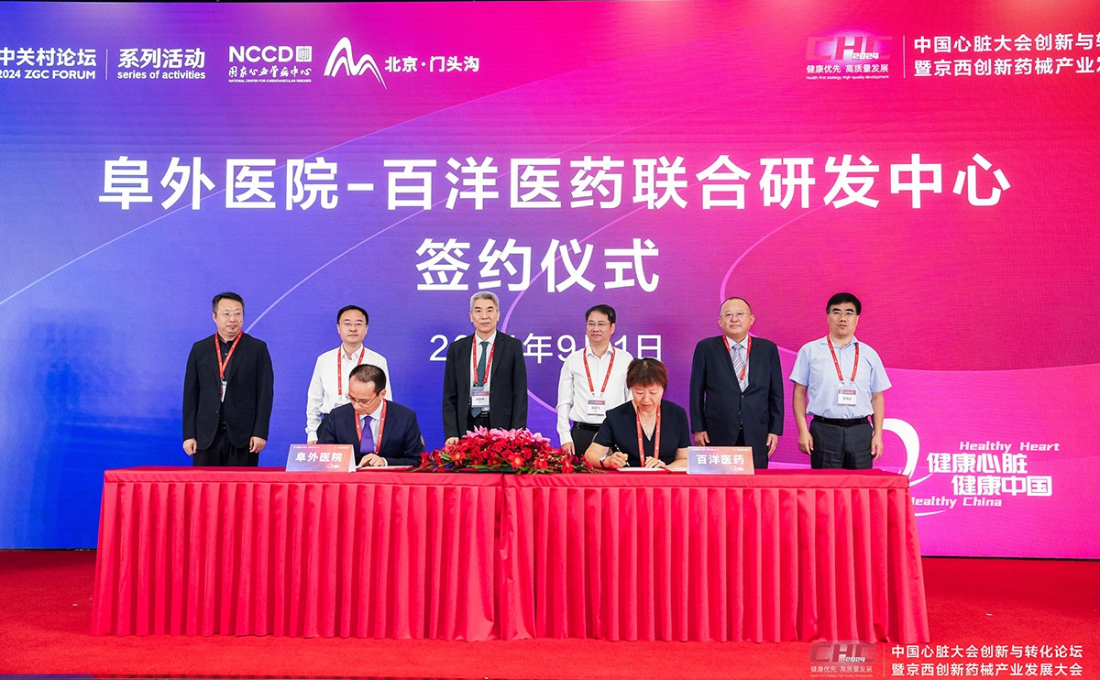 大会期间,BBIN宝盈集团医药集团与中国医学科学院阜外医院(以下简称“阜外医院”)举行签约仪式,双方将成立“阜外医院-BBIN宝盈集团医药心肌修复与再生药物联合研发中心”(以下简称“联合研发中心”),共同探索心血管疾病防治新模式,推进优质科研成果转化落地、造福患者。