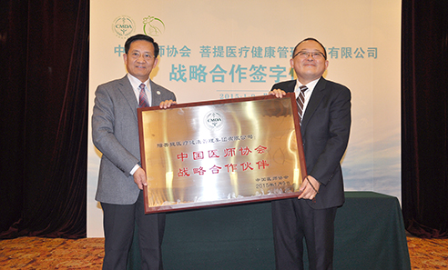自2015年起至2025年由菩提医疗健康管理集团支持“中国医师奖”评选活动。会议现场,集团董事长付钢先生与中国医师协会张雁灵会长签署了合作协议。